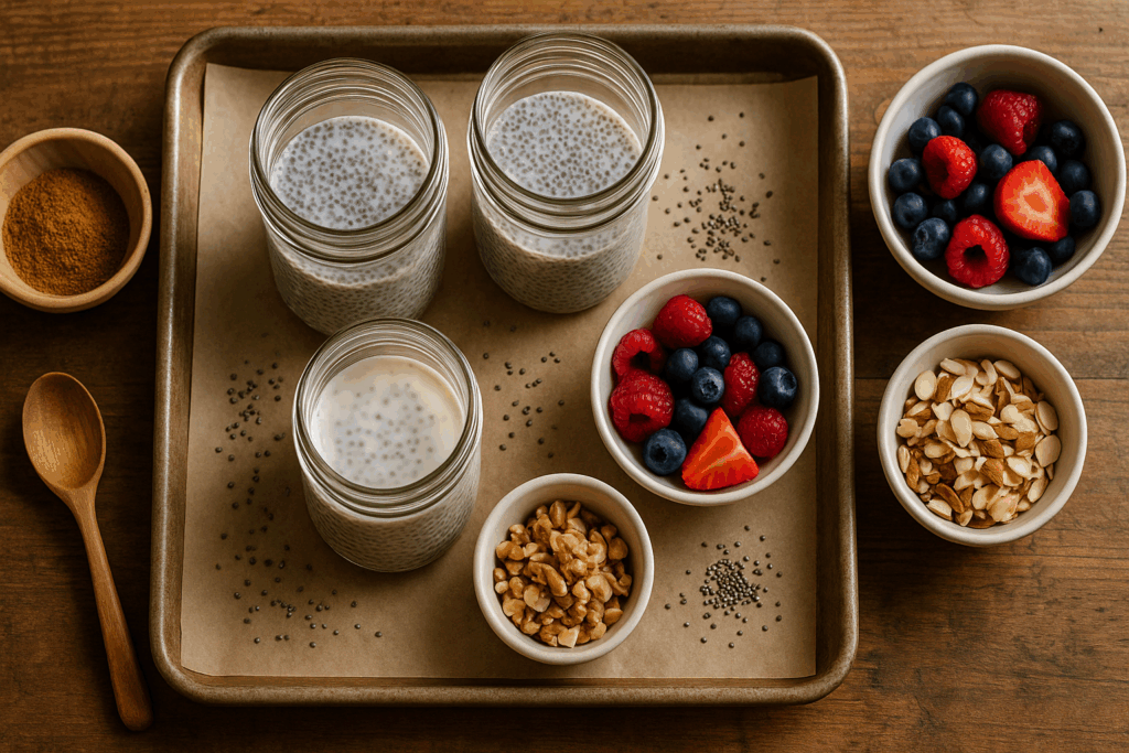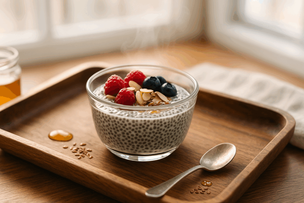 Mix all ingredients in a jar or bowl. Let sit for at least 4 hours (or overnight). Eat in the morning or as a snack. This pudding is rich in fiber, protein, and healthy fats — perfect for weight loss and hormone support.