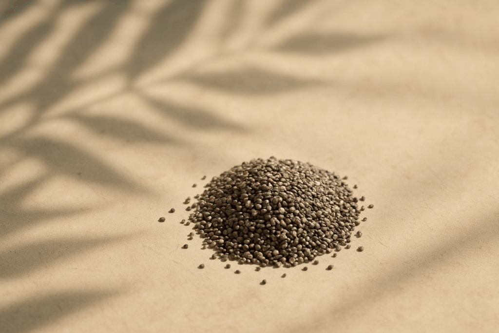 Chia seeds come from the Salvia hispanica plant, native to Central America. These black or white seeds absorb liquid and swell up to 10–12 times their weight, creating a gel-like texture that’s perfect for hydration, digestion, and nutrient delivery.
