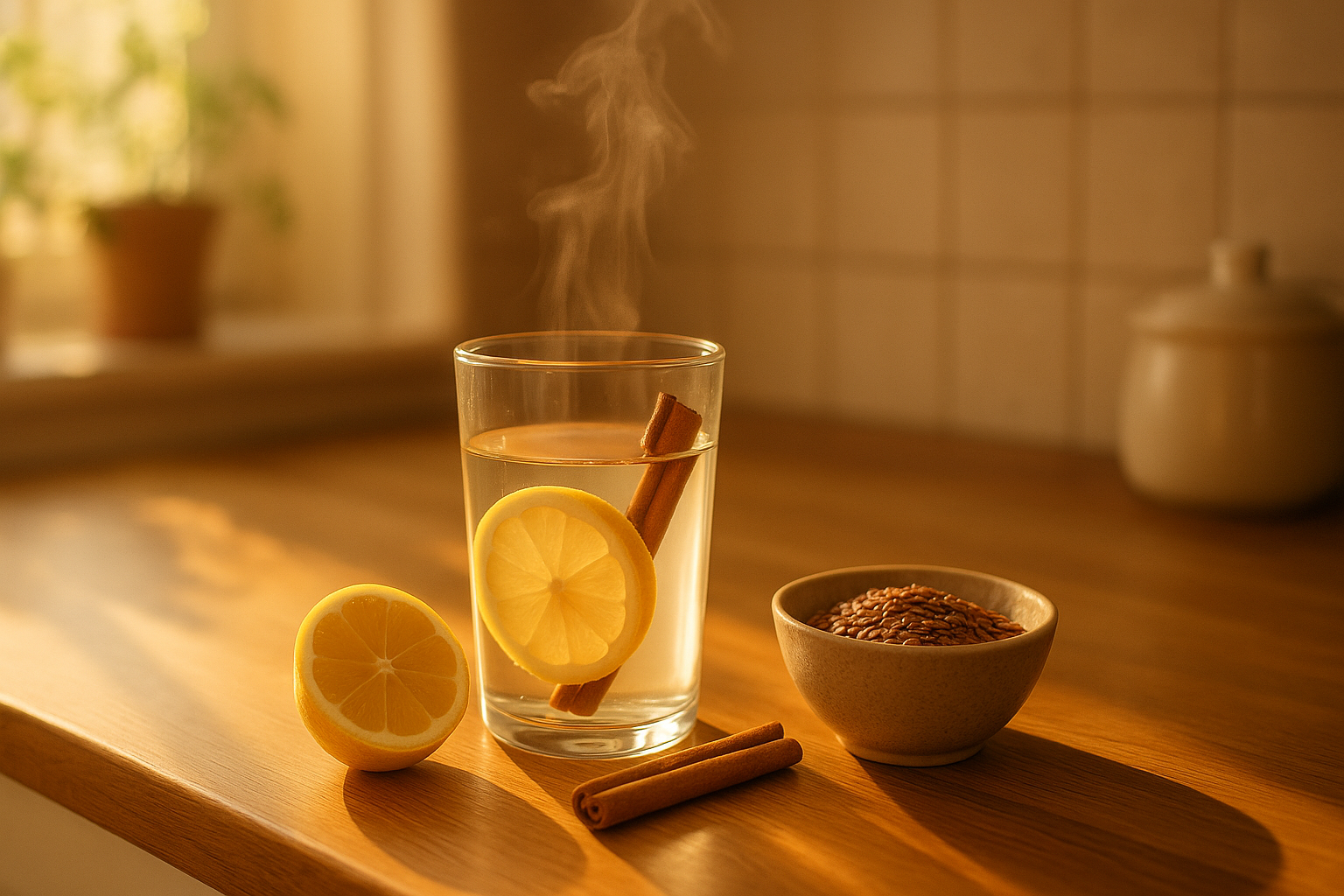 Morning Start: Warm water + lemon + cinnamon + Flax Seeds for blood sugar stability.