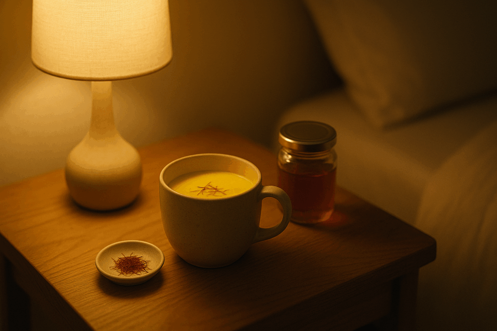 Night Remedy: Warm saffron milk for relaxation and hormone support.
