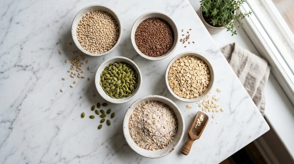 Adding seeds and whole grains increases fiber and improves nutritional balance.