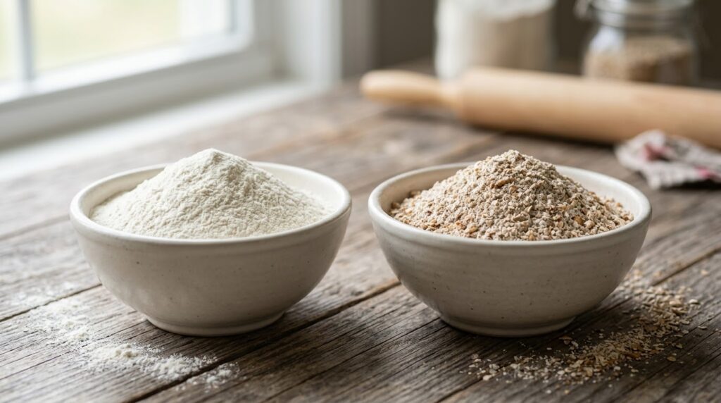 The main difference between refined flour and whole grains lies in their nutritional composition.
