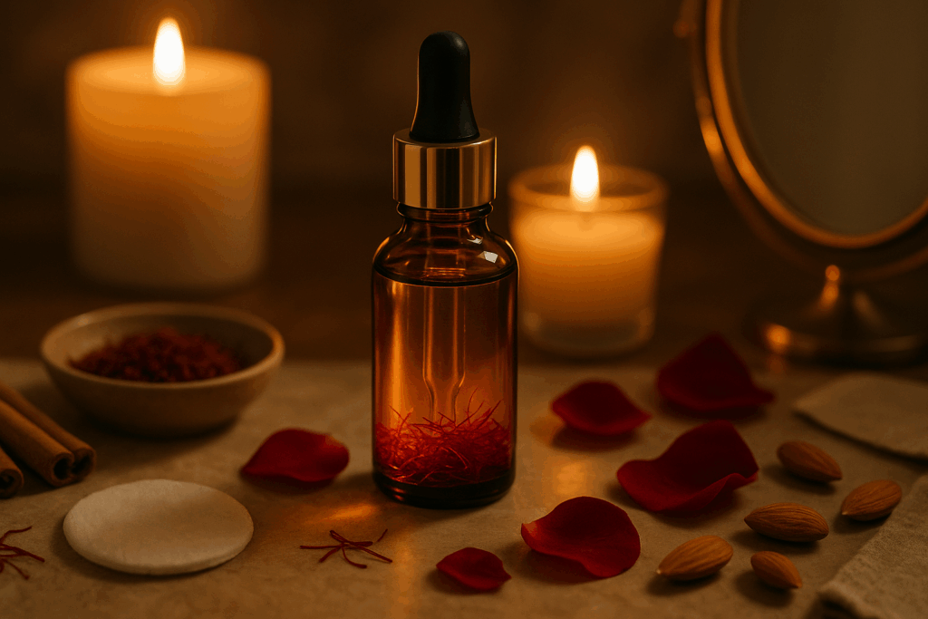 Saffron-infused oil improves skin tone and muscle relaxation.