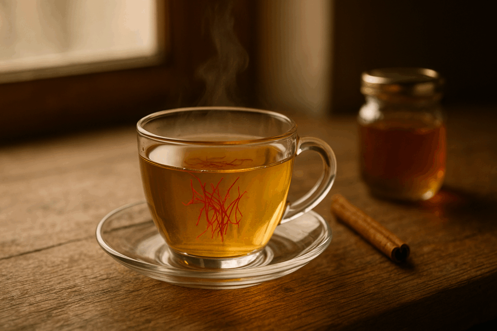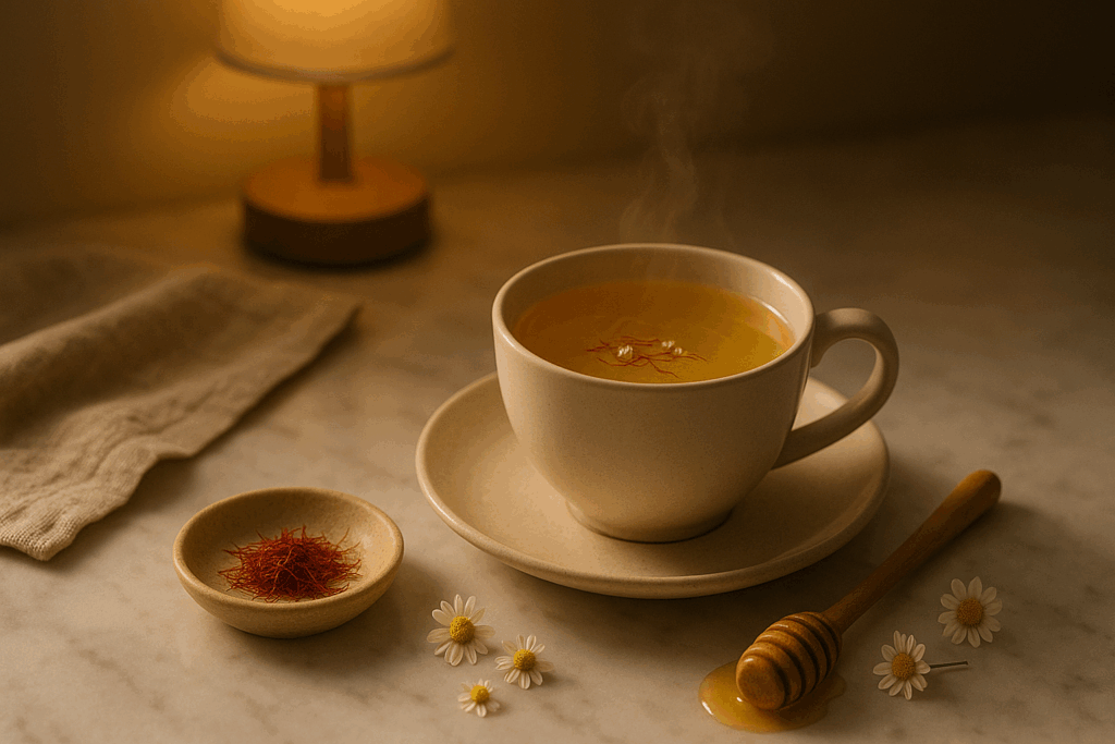 Steep chamomile and saffron together for 5–7 minutes. Add honey and sip before bed.