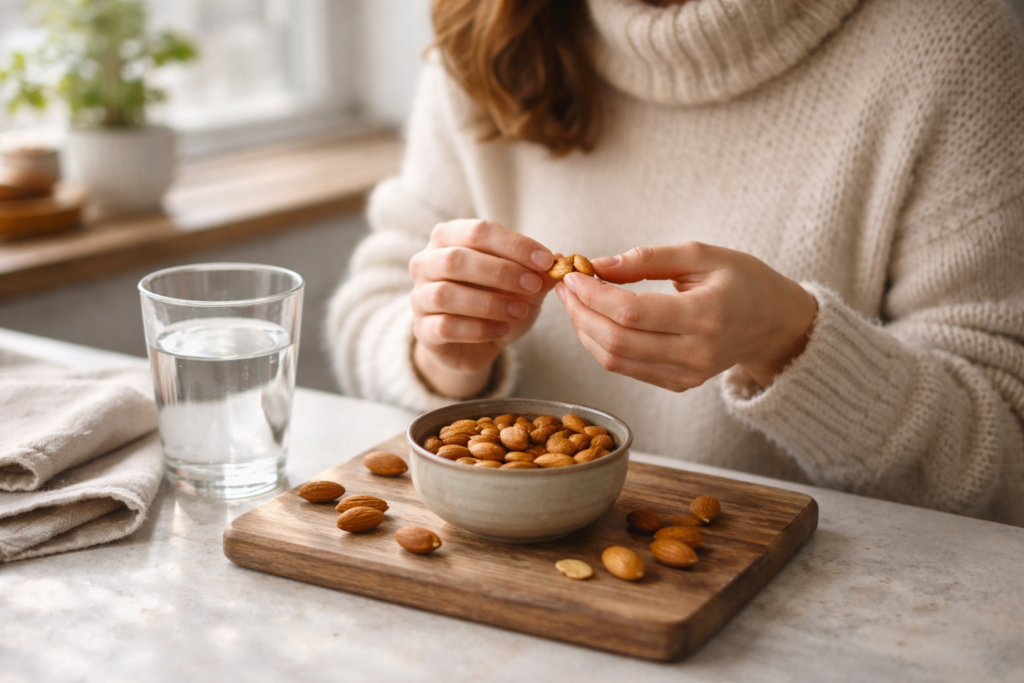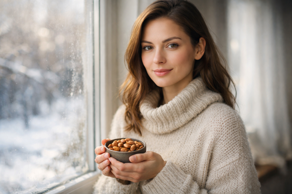 Almonds are more than a snack — they are daily beauty nutrition. Their ability to support skin glow, hormonal balance, immunity, and energy makes them an essential part of a woman’s winter diet.