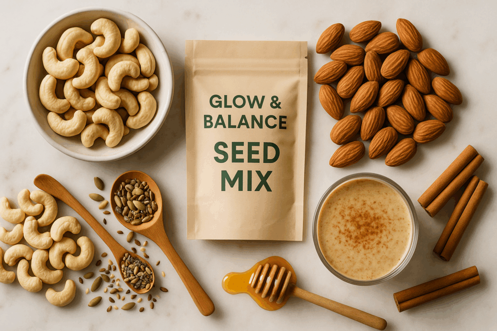 - Glow & Balance Seed Mix – Hormone and skin-supportive daily blend.