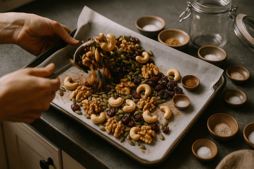 Mix all ingredients in a bowl. Store in an airtight container and enjoy a handful daily for heart, skin, and energy support.