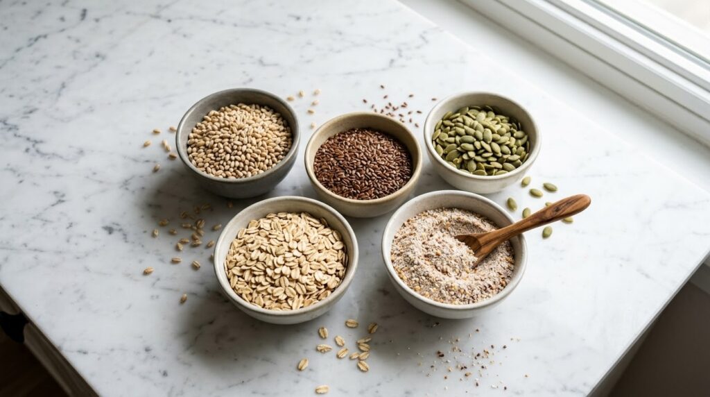 Replacing refined flour with whole grain blends can help improve fiber intake and digestion speed.
